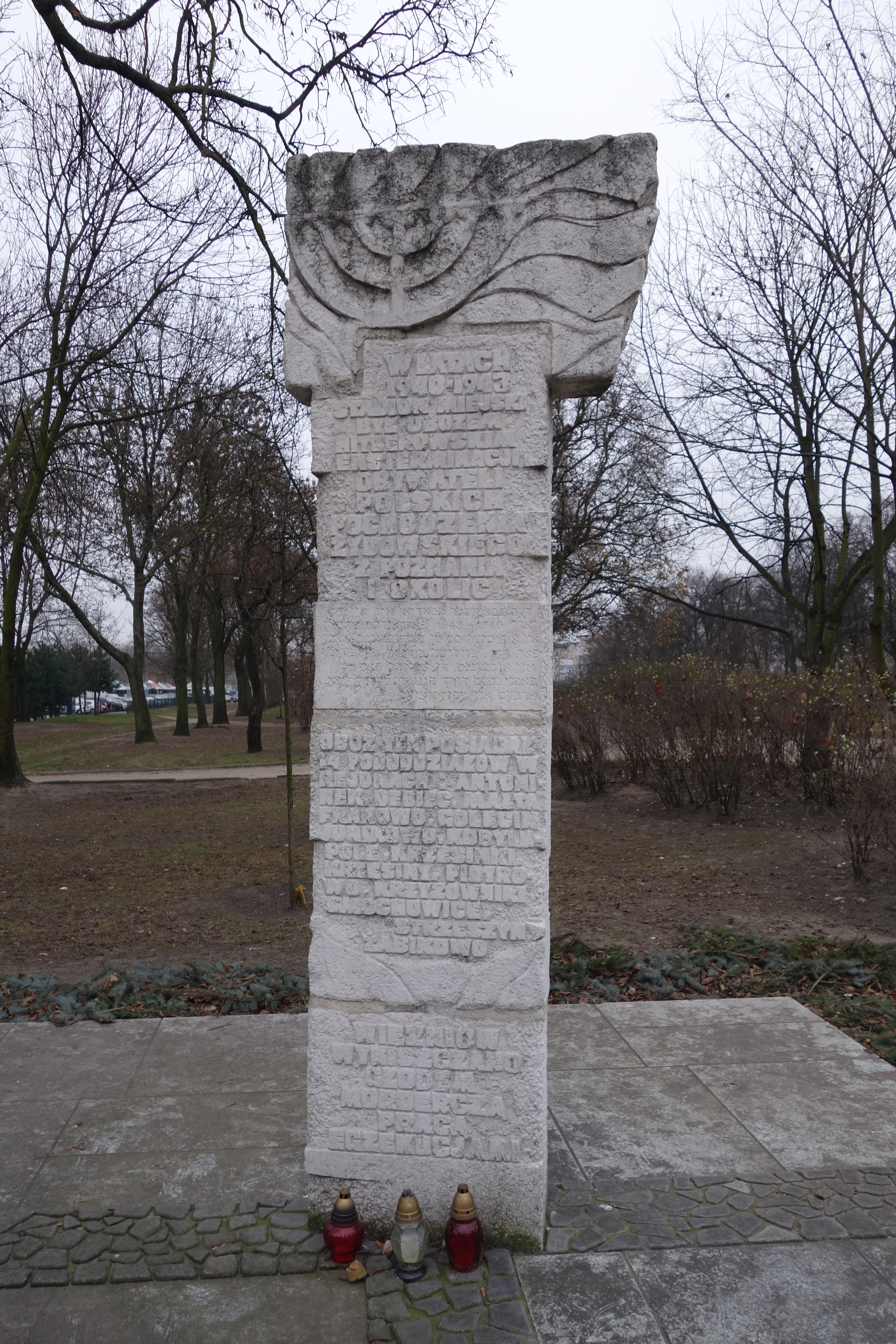 Despite the cold, Anka, Małgosia and I visited a few other sites associated with Jewish culture and history. The monument to the victims of the Poznan labor camp is on Królowa Jadwiga Street even though the actual detainment site was a block away in the old football stadium. The socialist-era monument is a tall concrete pillar with what looks like a menorah at the top. Anka pointed out the dedication on back of the monument stating it was erected on the 40th anniversary of the Warsaw Ghetto Uprising; even sites commemorating local events reproduce the idea that the Holocaust happened elsewhere—in cities such as Warsaw and Krakow.