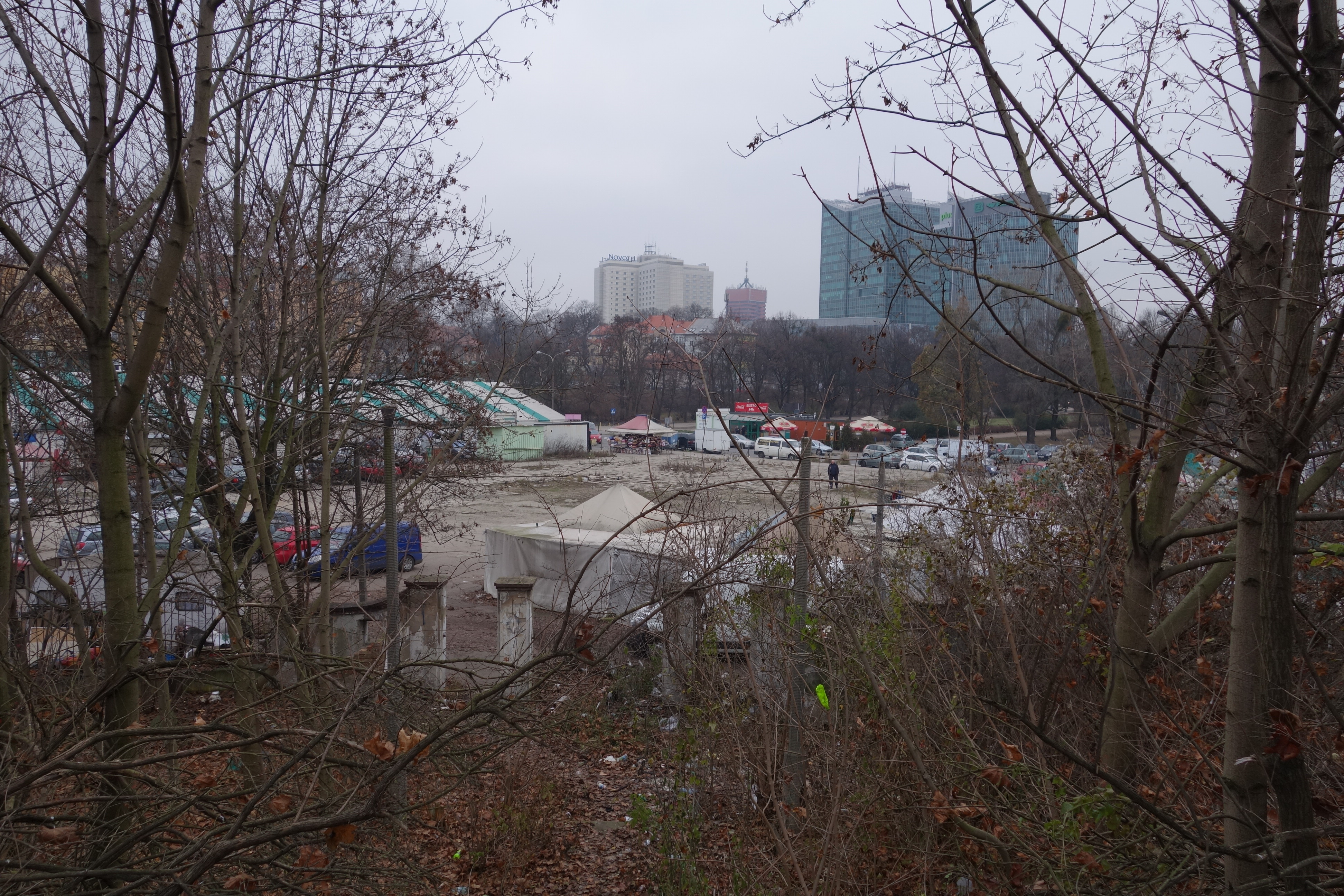 For the most part, this is forgotten space, despite its proximity to the center of the city. It is separated from Królowa Jadwiga Street by a dilapidated outdoor market. On this frigid day, there were no customers, just very cold sellers who urged us to their buy their wares. I was told the outdoor market used to be bigger. When they were in high school, it was the place to get real Adidas and blue jeans. With all the competition from new shopping centers, the market has shrunk. There is an ongoing debate about what to do with the old stadium—what primary purpose should the space fill? Should it be a place for sports activities? A nature preserve? A place of commemoration for those who suffered and died there? Or should it become another housing development or mall?