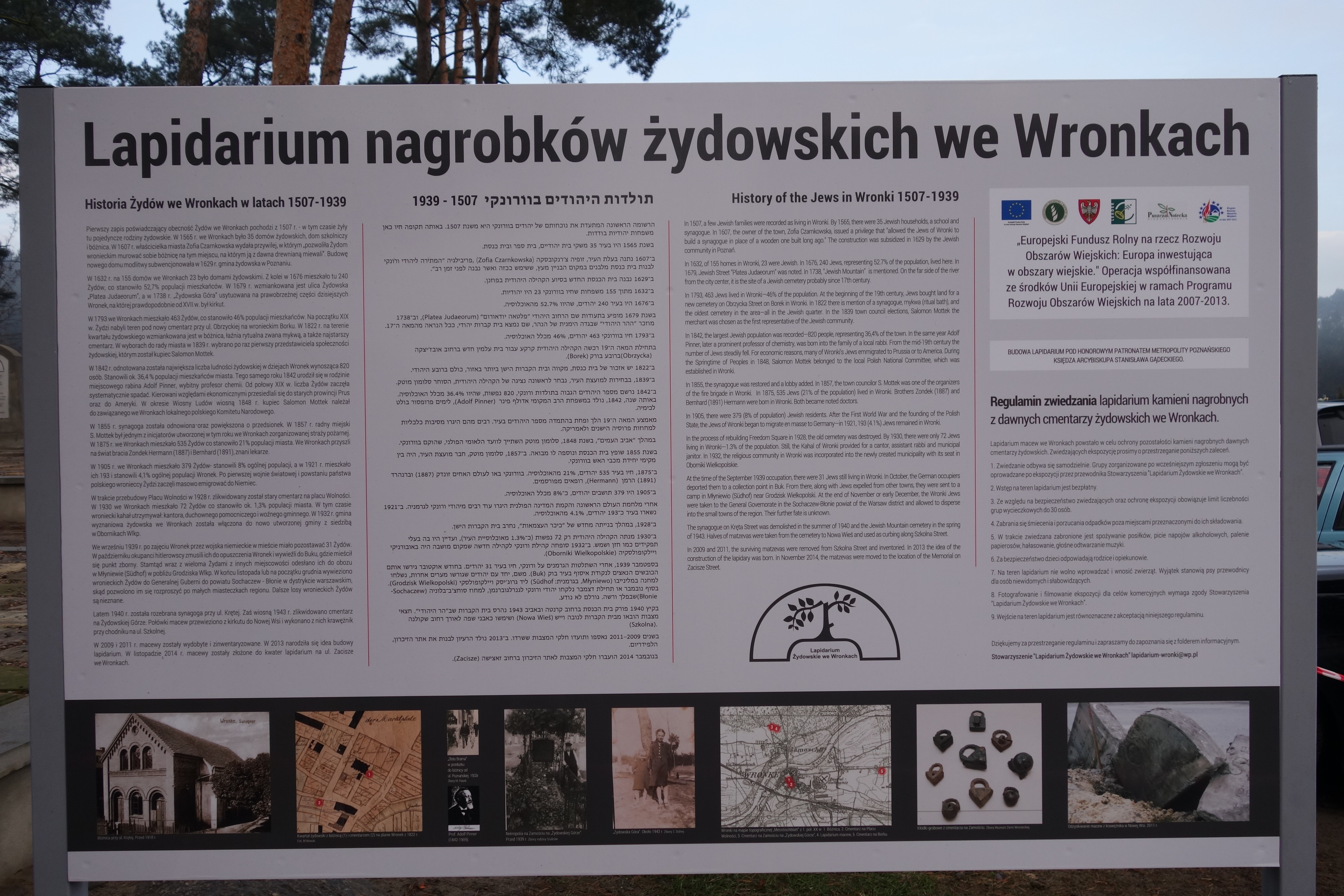 In memory of the Jewish community that inhabited Wronki from 1507-1939. Lapidarium of tombstones from the destroyed Jewish cemeteries of Wronki