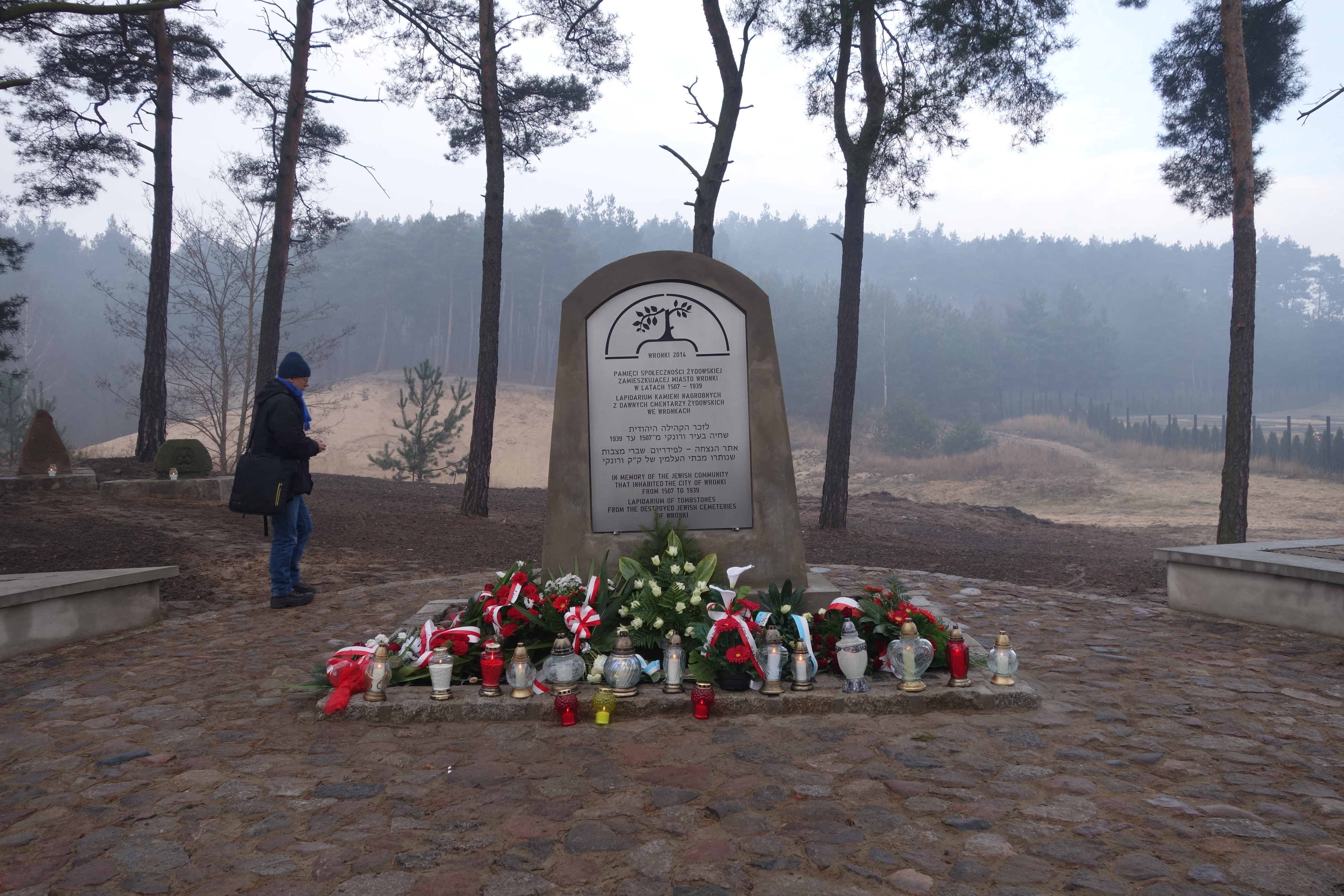 A lapidarium is essentially a place where stones are displayed. In this case, the fragments of the tombstones from the Jewish cemetery were recovered and placed in raised beds. The space around them is filled with small stones about the size of those that customarily would be placed on Jewish graves. Written in Polish, Hebrew, and English on a monument in the shape of a large tombstone are the words: