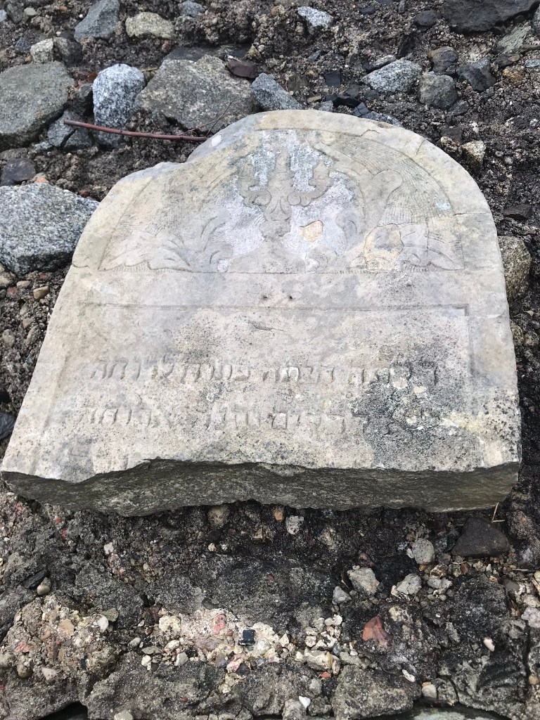 Tombstone fragments in the make-shift memorial, Krośniewice Jewish Cemetery