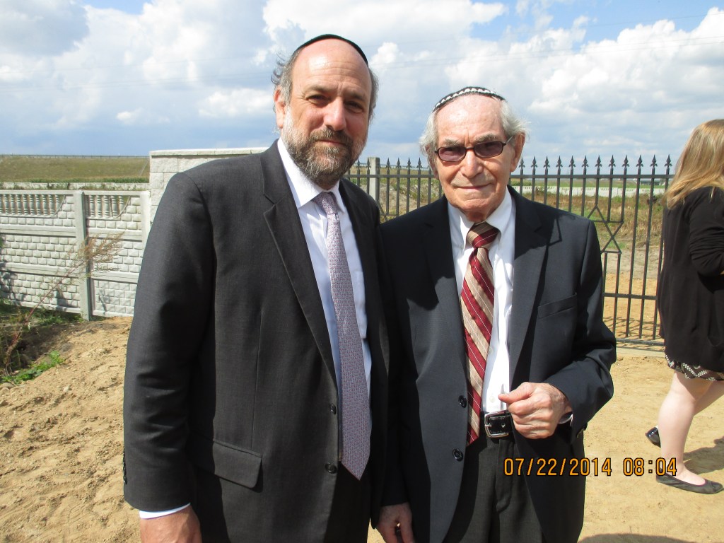 Sol Rosenkranz (right) with Rabbi Michael Schudrich at the rededication of the Krosniewice Jewish cemetery