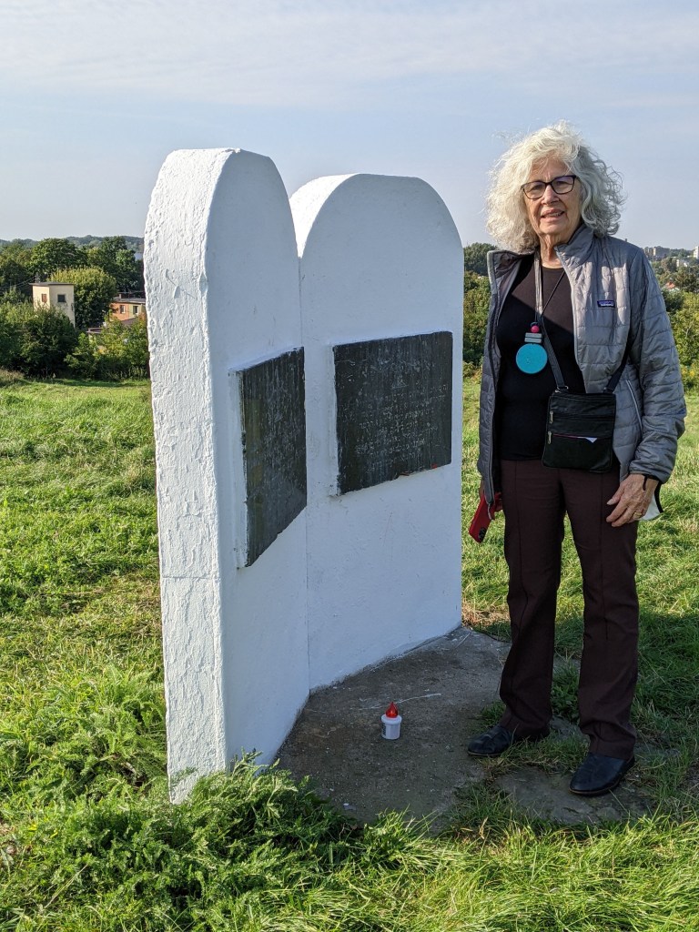 On September 12, we visited students at the Jan Kasprowicz High School (Liceum II). Roberta and I agree that such outreach to young people was one of the most important (if not the most important) part of our visit. We were welcomed by school director (principal) Artur Ciurlej, teacher Anna Ambrosiak, and a room full of students eager to hear from us. They showed us a short video about their recent activities related to Jewish memory (including dancing lessons!), and then Roberta and I each told our personal family story, explained our ancestors lived nearby, and talked briefly about our desire to restore Jewish memory. The meeting took place in English, but the students clearly understood us; they asked thoughtful questions and shared some of their own experiences with us. We spoke for more than a class period, even after the bells rang. Some students promised to meet us again in May, although they will have graduated by then.