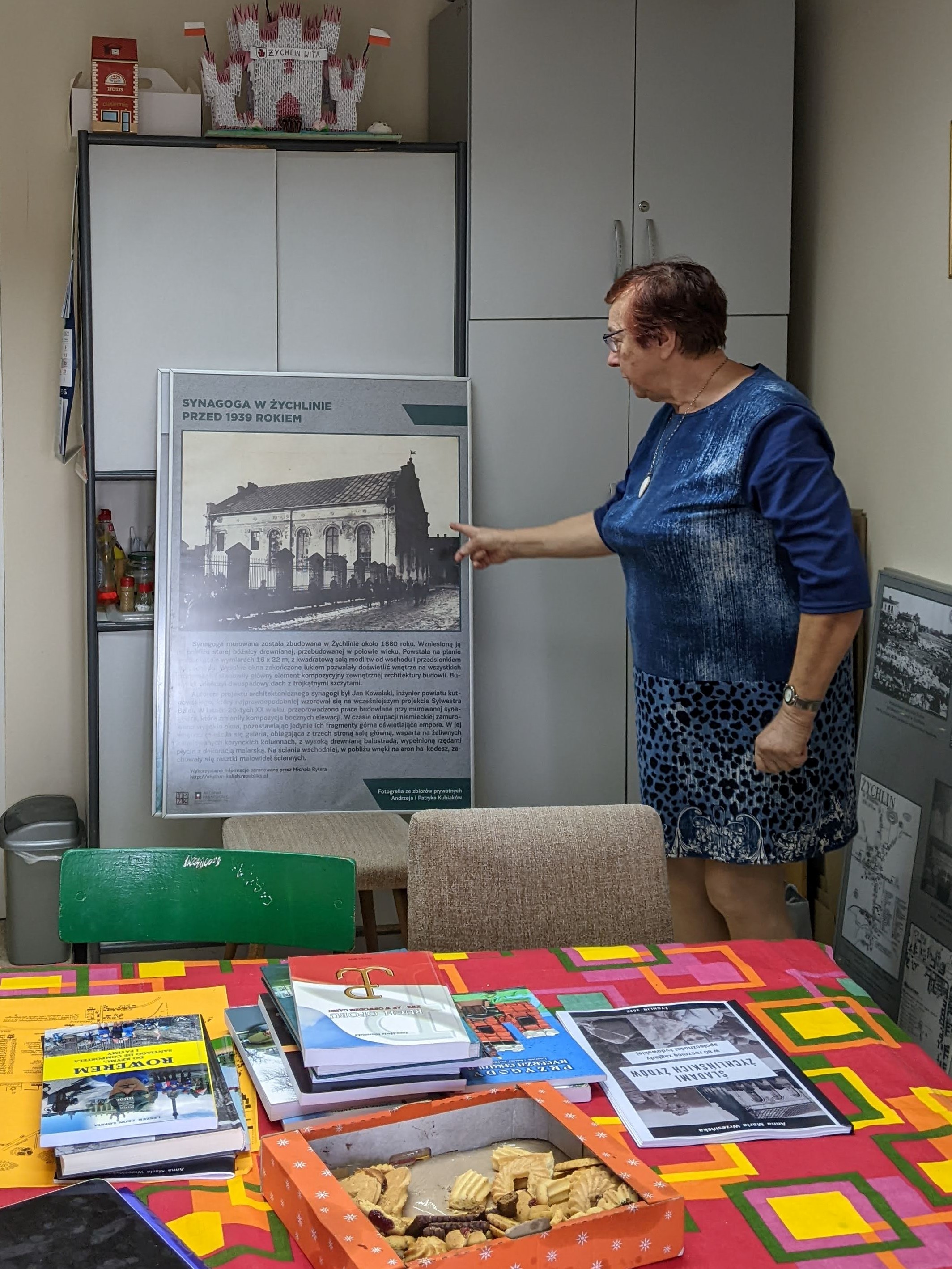 Anna Wrzesińksa took us to the office of the Association of Żychlin History Enthusiasts (Towarzyszenie Miłośników Histori Żychlinskiej, TMHŻ) where we met with members of the organization and learned about their recent projects. They showed us the display boards from an exhibition they put together about Żychlin’s Jewish Community. It was on display this spring during the Forum for Dialogue project “In the Footsteps of Żychlin’s Jews.” They also showed us the numerous publications they have released, including a photocopy of their latest work, still awaiting publication, about Żychlin’s Jewish history.