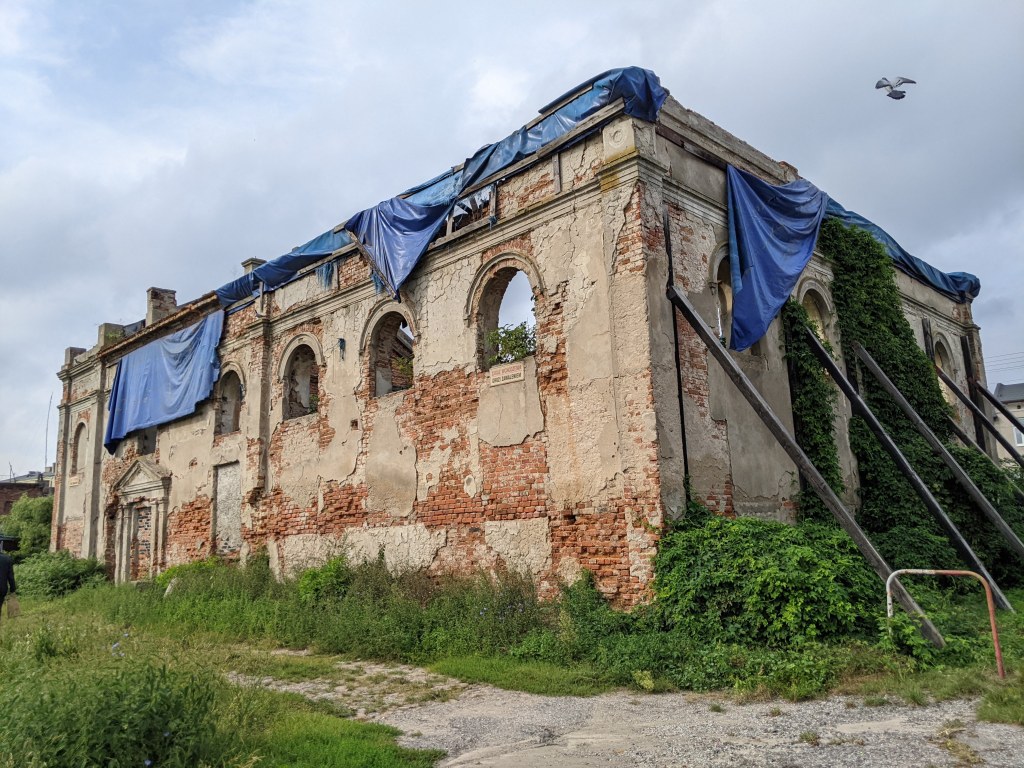 Because I heard Żychlin Mayor Grzegorz Ambroziak speak at the unveiling of the new monument commemorating Żychlin’s Jewish community, I had the sense he wants to preserve the memory of the town’s Jews. At our meeting, he confirmed this. He led the conversation with his concerns about the fate of the synagogue ruins, which are situated in an impoverished area just off the central town square. After the war, the city used the building as a warehouse, and they maintained it until the Jewish Community of Warsaw reclaimed the property. For years it stood empty as the city negotiated with the Jewish Community to obtain legal possession of the building. They envisioned turning it into a museum of regional history. The city was granted possession of the synagogue in 2007-8, exactly when the roof caved in. Since then, the decay of the building has accelerated due to the lack of a roof. Currently, wooden supports hold up the shorter walls of the building, but it looks like it could fall down at any moment. The city would like to use the space for a museum.