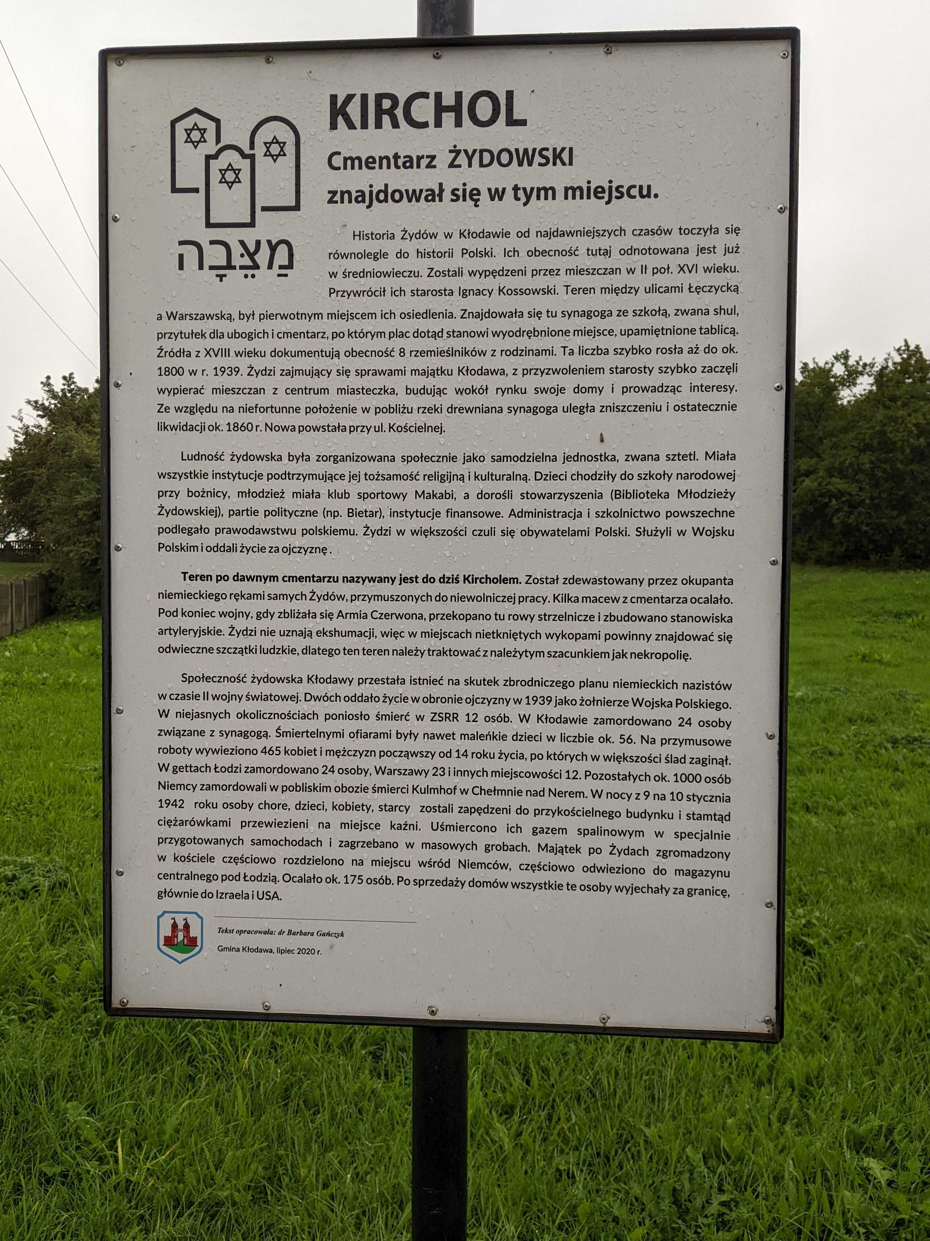After visiting Dąbrowice, Roberta, Yosef, and I continued 14 km to Kłodawa. All the towns in the scope of ADJCP’s “central Poland” are very close to each other, connected by narrow country roads.