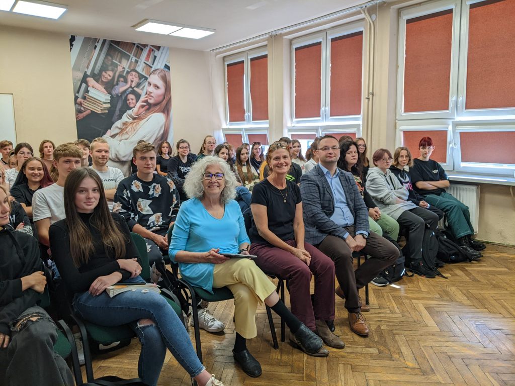 Students at the Jan Kasprowicz High School in Kutno, together with Roberta, Marysia, and principal Ciurlej