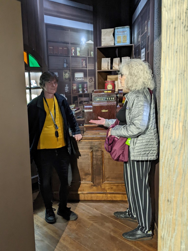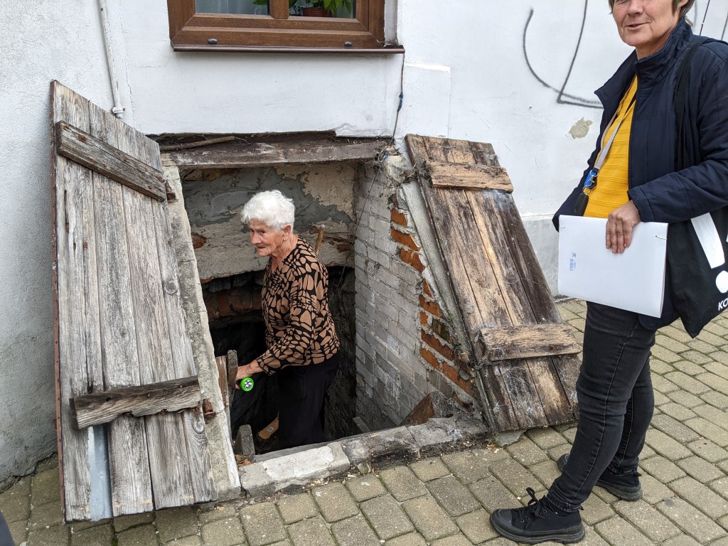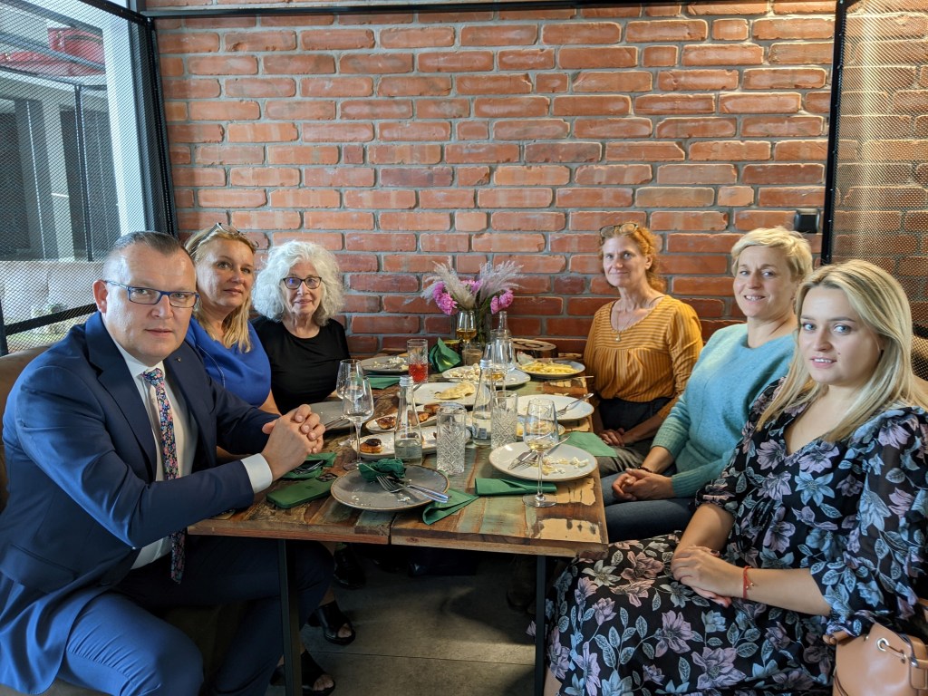 Several conversations ensued at once, providing a flood of information about past heritage projects as well as future plans. Notably, Edyta Dorsz had brought vital records books dating from between the world wars. The town retains these records until they are 100 years old, and then they will be sent to the National Archive. Tears came to Mayor Gołembiewski’s eyes as he explained that the books document the life transitions of the Jewish community that was wiped out during World War II. He said studying history is one thing but holding a physical trace of that community in your hands is another. The book contains the names of 1300 Jewish residents. He feels their loss viscerally. He asked, what would their city have been like if not for the war? Probably, it would have been a much more vital place with 30,000 residents instead of their current 2000.