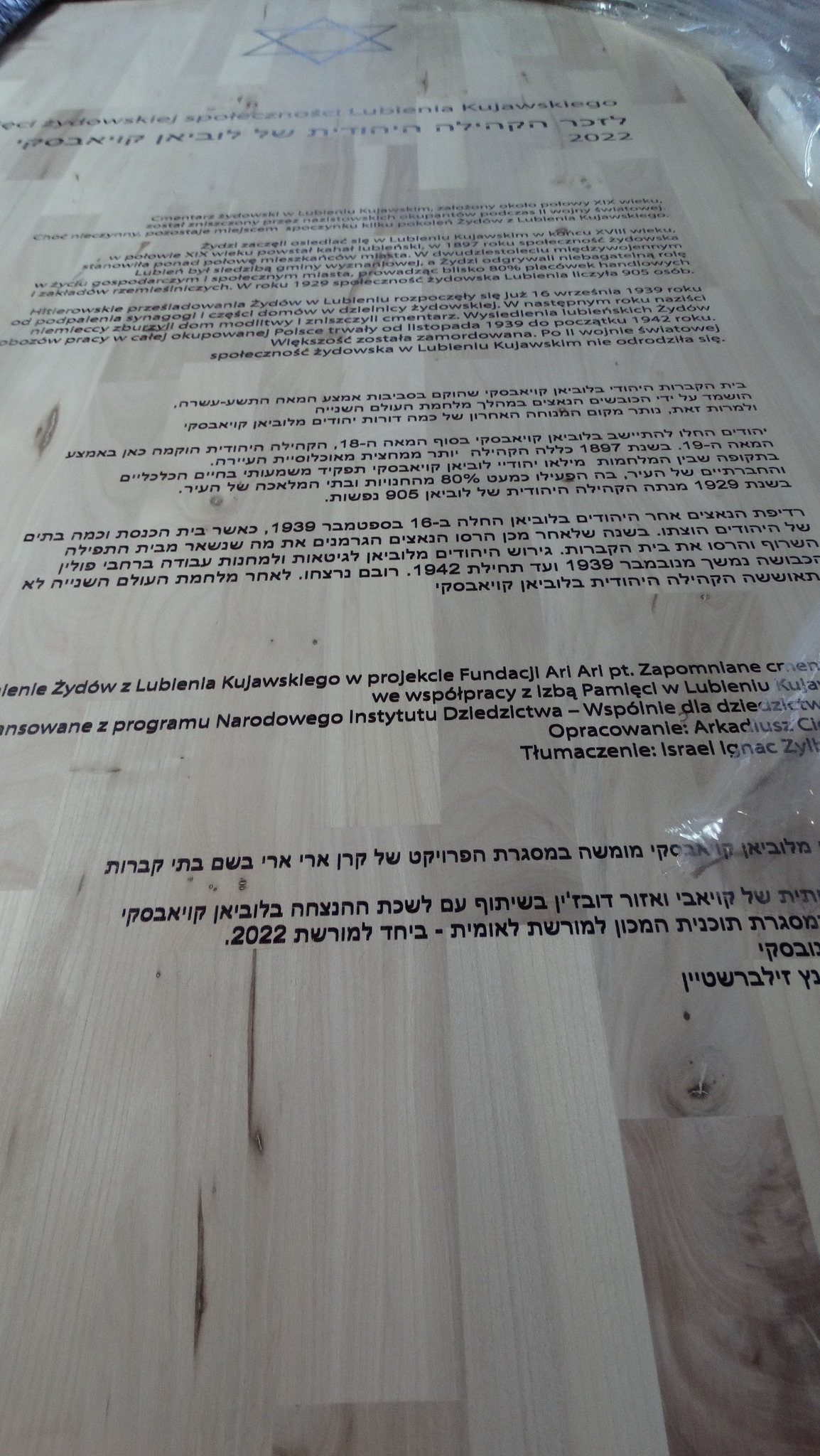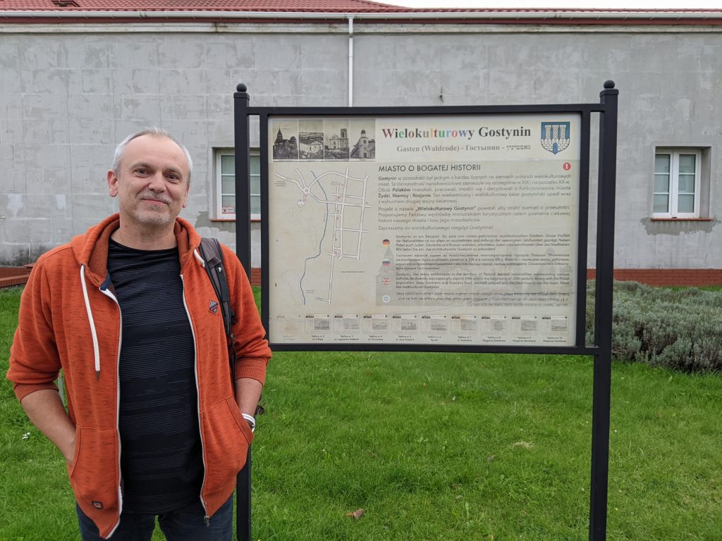 Andrzej and Magdalena Dominowski, Lubień Kujawski residents who have collaborated with the Ari Ari Foundation on regional history projects, met us for a brief conversation on the edge of the cemetery/parking lot. They described some of the activities they have helped spearhead. Both are schoolteachers, and Andrzej has led historical walks that feature the town’s Jewish history. His next walk occurred several days after our visit, on September 26. Andrzej also sent the ADJCP materials about the Jewish community of Lubień Kujawski: the relevant section of Tomasz Kawski’s book Gminy Żydowskie Pogranicza Wielkopolski, Mazowsza, i Pomorza w latach 1918-1942 (Jewish Communities in the Wielkopolski, Mazowsza, and Pomorza Regions 1918-1942), and archival postwar questionnaires documenting material and personal losses during World War II.