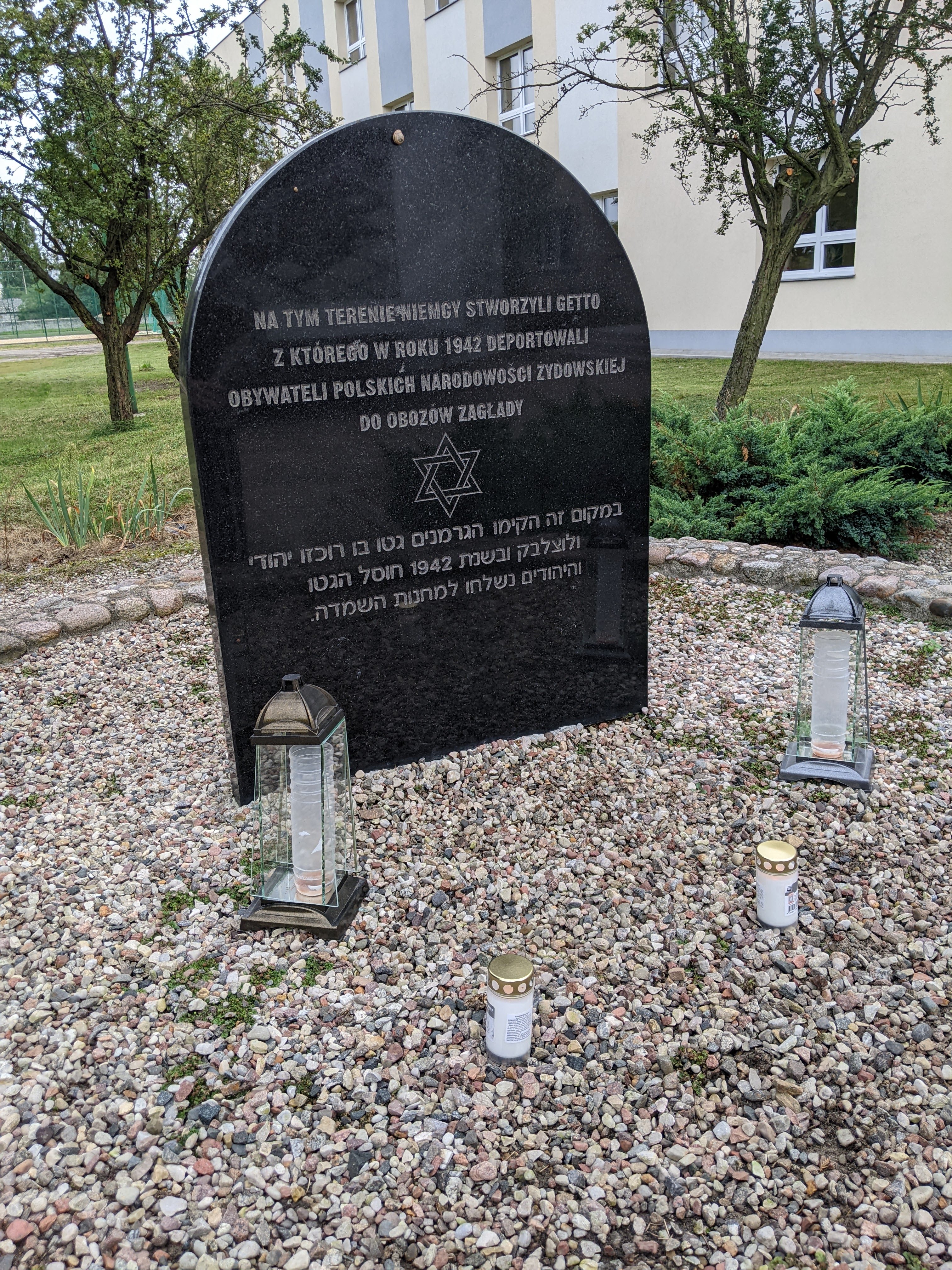 We didn’t have time to learn more about the Jewish history of the town, but Virtual Sztetl provides a good outline. Jews first settled in Lubień in the 2nd half of the 18th century. They filled important positions in the local economy and in local government. Jewish community properties included a wooden synagogue, prayer houses, schools, rabbi’s apartment, and the partially fenced cemetery. At the beginning of the War, most of these properties were burned and the Jewish population was sent to work camps and ghettos. Only a few survivors returned briefly in 1946.