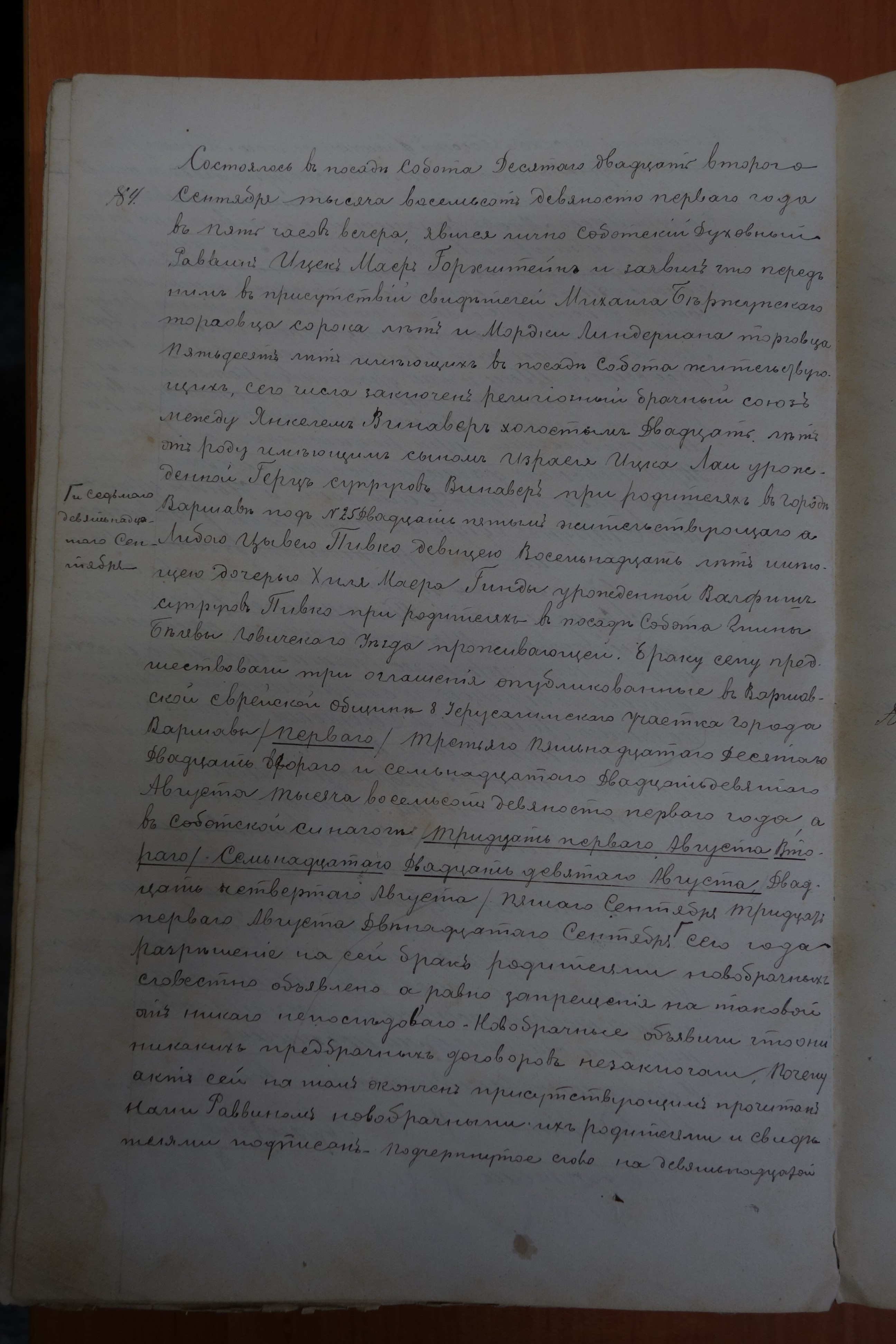 Liba Piwko and Jankel Winawer's marriage record, 1891