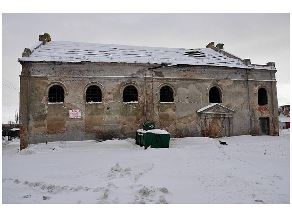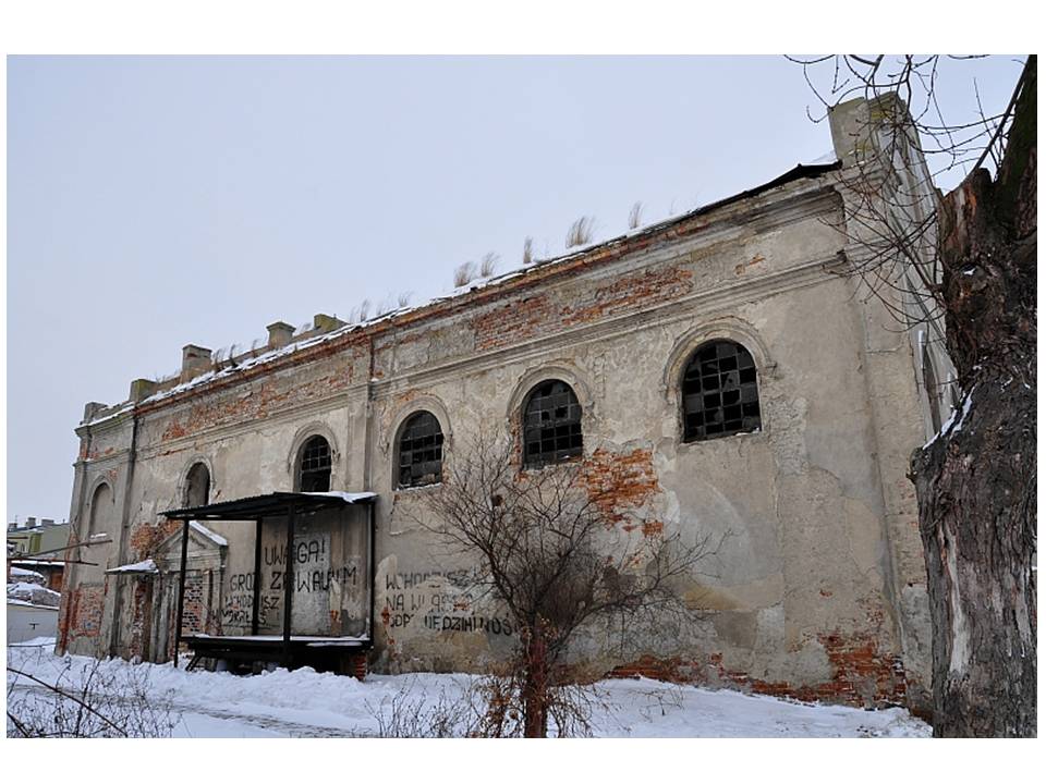 The patch of tall weeds in front of the synagogue (on Jana Kulińskiego Street) used to be a fenced garden. The garden continued to be maintained after the war, even though the Polish residents used the synagogue as a warehouse, as did the Nazis. The lower sections of the windows were bricked in and new doorways were installed in the sides of the building to facilitate loading and unloading.